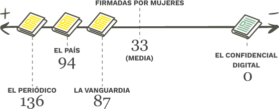 de piezas escritas por mujeres tiene (136); seguido de El País (94) y La Vanguardia (87).