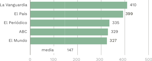 En el estudio también se ha analizado el número de piezas escritas en cada medio y El Periódico es el que mayor número
