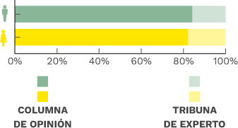 En esta ocasión también se han analizado tanto las columnas como las tribunas de opinión. De las 3.693 piezas analizadas, 636 son tribunas (cerca de un 36%) frente a 2.757 columnas de opinión.